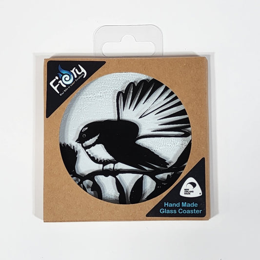 NZ Made Glass Coaster Fantail Piwakawaka - Single in display box