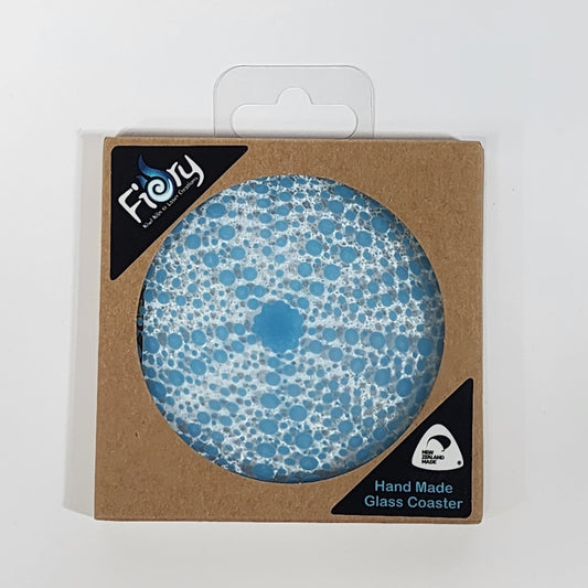 NZ Made Glass Coaster Kina - Sky Blue - Single in display box