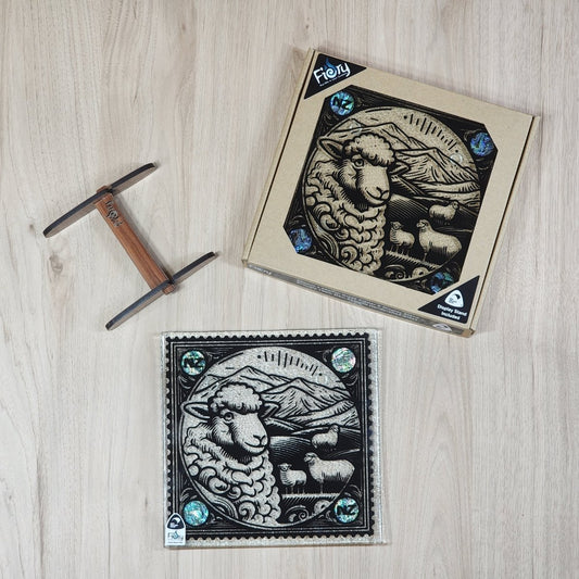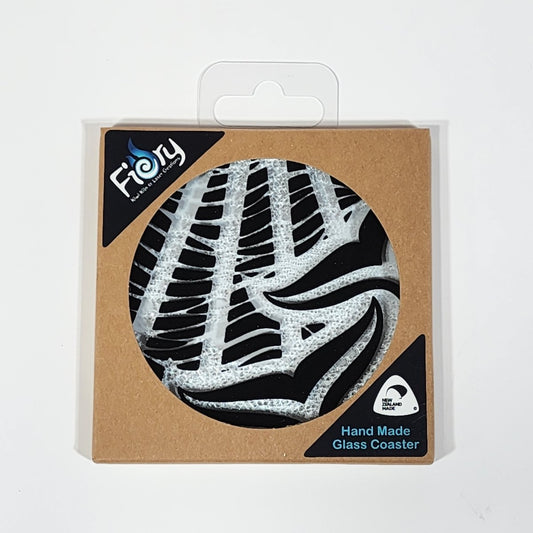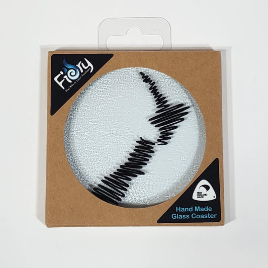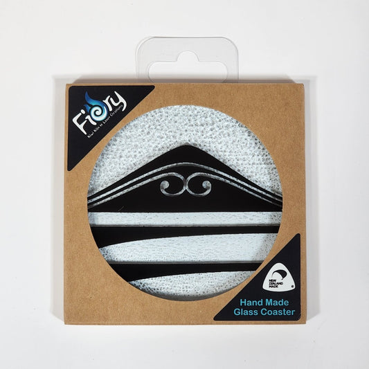 NZ Made Glass Coasters Te Maunga - Blk - Single in display box
