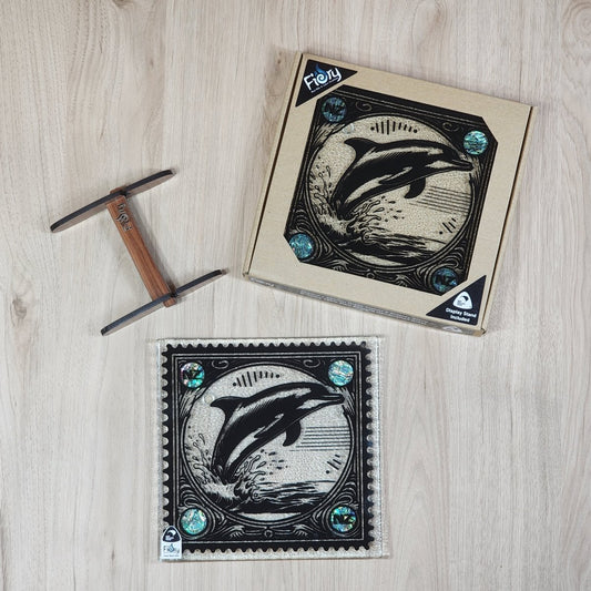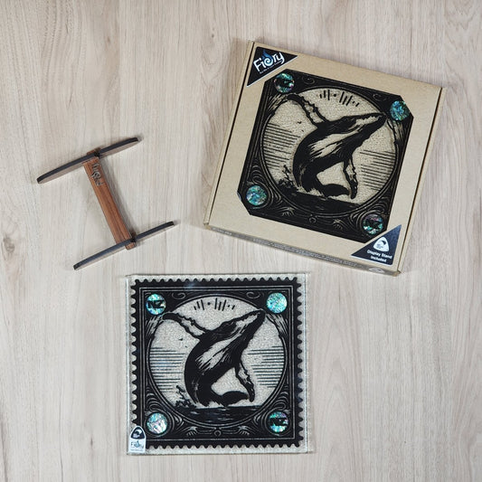 NZ Made Glass Coaster Whale Tails - Blk - Single in display box.