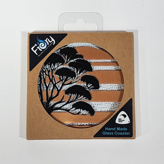 NZ Made Glass Coaster Pohutukawa - Blk/Copper - Single in display box