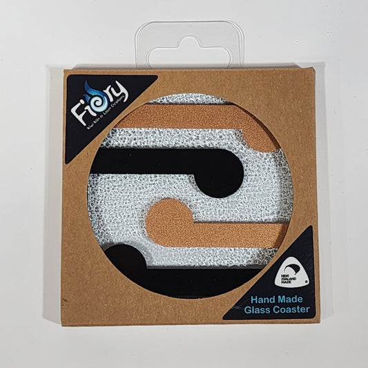 NZ Made Glass Coaster Two Winds - Blk/Copper - Single in display box