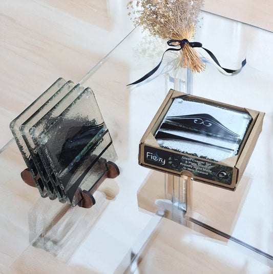 NZ Made Glass Coasters Te Maunga - Blk - Single in display box