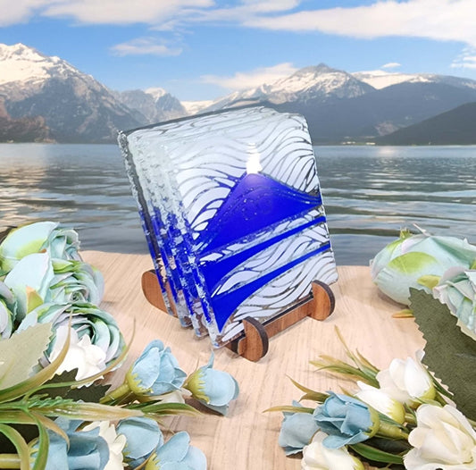 NZ Made Glass Coaster Te Maunga - Blue/Wht - Single in display box