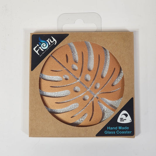 NZ Made Glass Coaster Monstera Copper - Single in display box