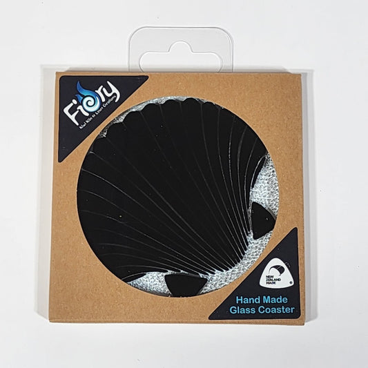 NZ Made Glass Coaster Scallop - Black - Single in display box