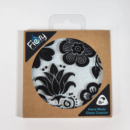 NZ Made Glass Coaster Wild Flowers - Blk - Single in display box